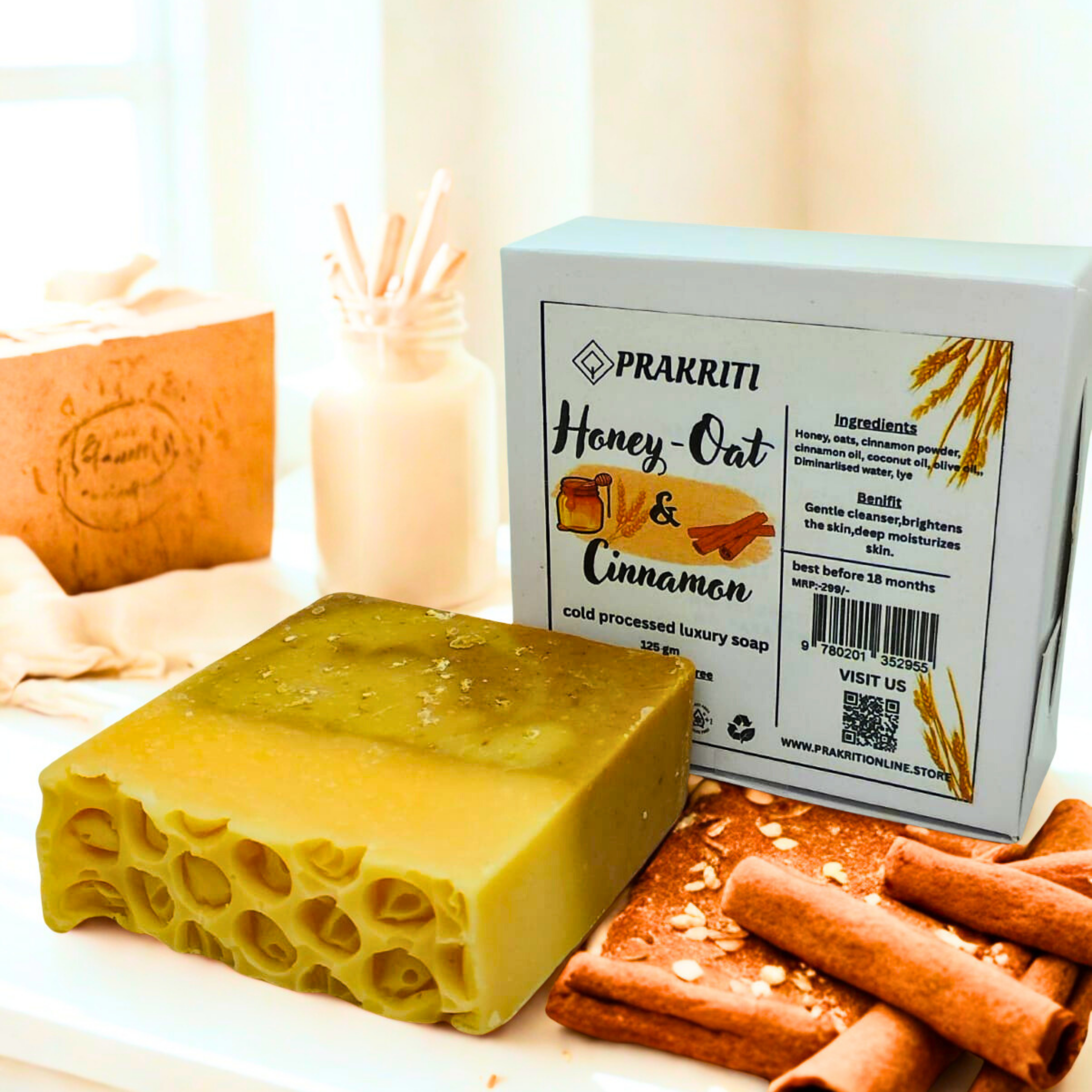 Nourish your skin with the goodness of nature! This handcrafted soap blends honey, oats, and cinnamon to gently exfoliate, hydrate, and soothe your skin.